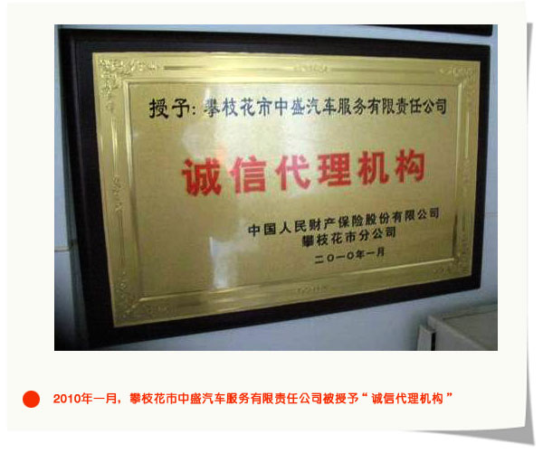 2010年人保財(cái)險(xiǎn)誠(chéng)信代理機(jī)構(gòu)